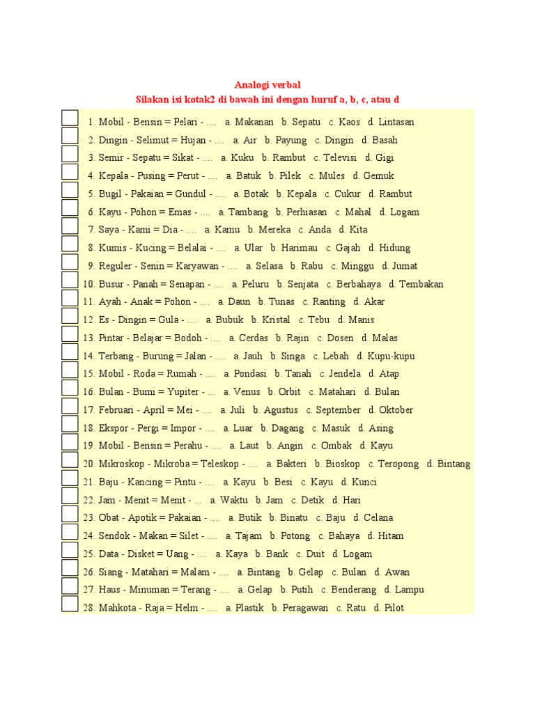 Yang pertama adalah tes kemampuan verbal yang fungsinya untuk mengetahui sejauh mana kemampuan calon karyawan dalam menghadapi. Soal psikotes yang sering keluar dilengkapi jawabannya. Ini dia jenis soal psikotes untuk tes seleksi kerja yang harus kamu ketahui serta tips cara mengerjakannya. Hampir semua calon pekerja/karyawan yang akan direkrut dipastikan wajib menjalani tes psikotes. Contoh soal psikotes sinonim atau persamaan kata. Tes psikotes army alpha intelegence. Soal psikotes motivasi kepemimpinan tes motivasi kepemimpinan adalah tes psikologi yang mengukur besarnya motivasi, kehendak, atau keinginan seseorang untuk menjadi pemimpin di lingkungannya. Tes psikotes ini merupakan soal kombinasi bentuk dan deretan angka. Selain tes iq ada juga tes kepribadian, dan wawancara. Kami akan jabarkan secara jelas dan detail mulai dari pengertian psikotes contoh serta pembahasannya. Ketujuh ada soal sinonim, tes ini sebetulnya gak terlalu sulit karena kamu pasti sudah pernah 10. Tes ini dapat berbentuk tertulis, proyektif, maupun evaluasi secara verbal yang teradministrasi untuk mengukur fungsi atau kemampuan kognitif dan emosional. Penilaian yang diperoleh akan meliputi attitude, personality, interest, dan intelligence dari.